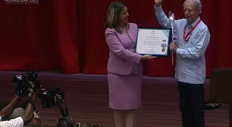 El intelectual brasileño Frei Betto recibió la Distinción por la Educación Cubana por sus aportes en ese ámbito, en la última jornada del XIX Congreso Internacional Pedagogía 2025 que concluyó hoy en La Habana.