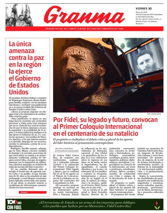 También en homenaje al líder histórico de la Revolución Cubana, la dirigente estudiantil hizo un convite: entre el 10 y el 13 de agosto, en La Habana, se realizará el Primer Coloquio Internacional Fidel: legado y futuro.